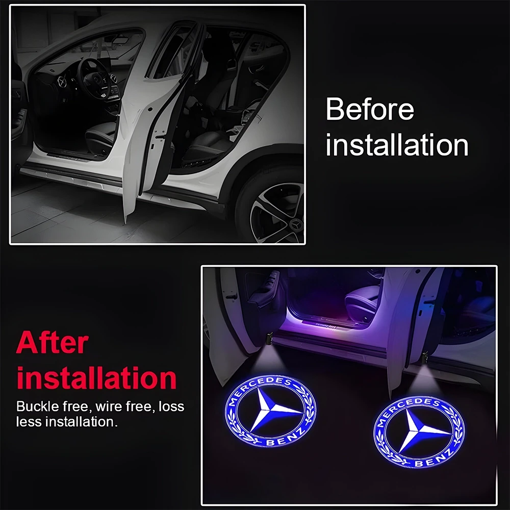 إضاءة باب السيارة LED بتقنية إسقاط ليزر تعرض شعار ماركة السيارة عند فتح الباب لرفاهية وتميّز عالي.