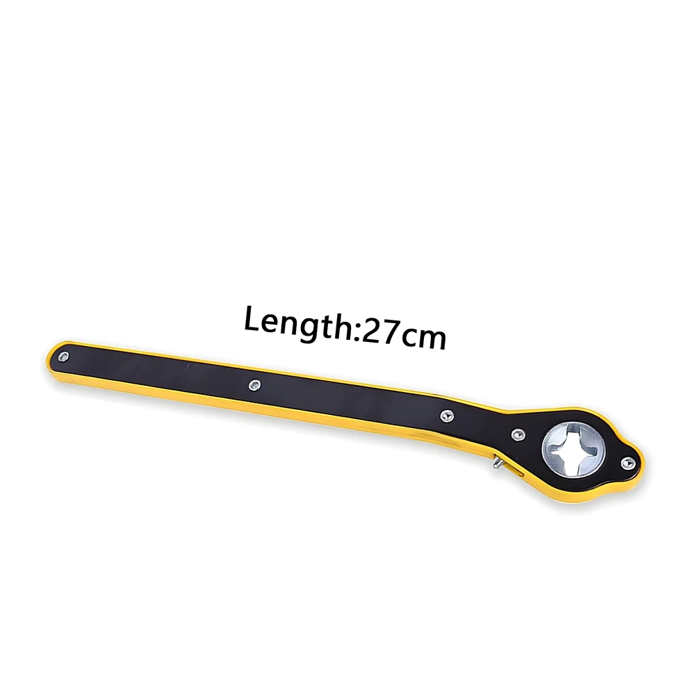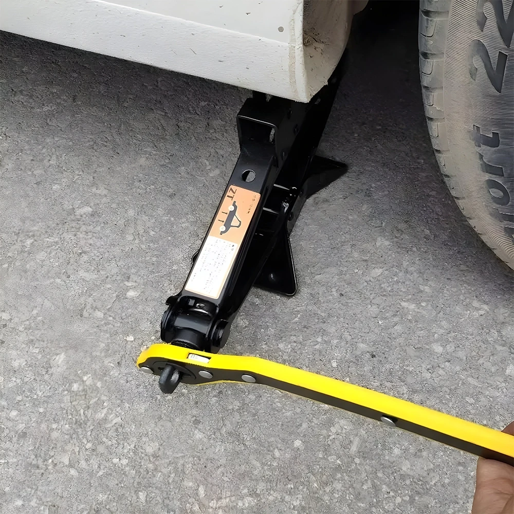 مفتاح رفع كوريك السيارة بتصميم طويل مع آلية سقاطة لتسهيل عملية رفع وخفض السيارة بسرعة وأمان.