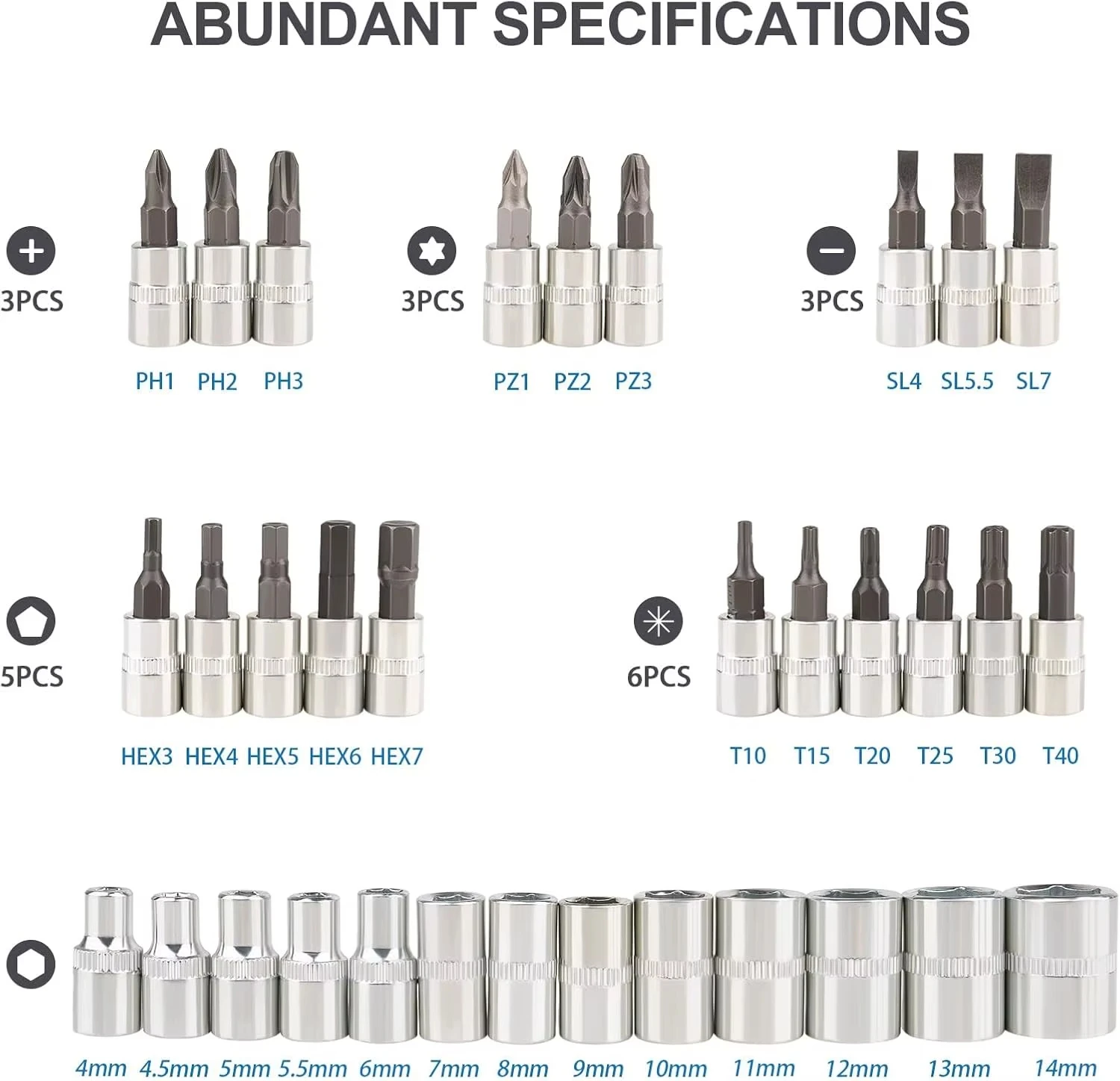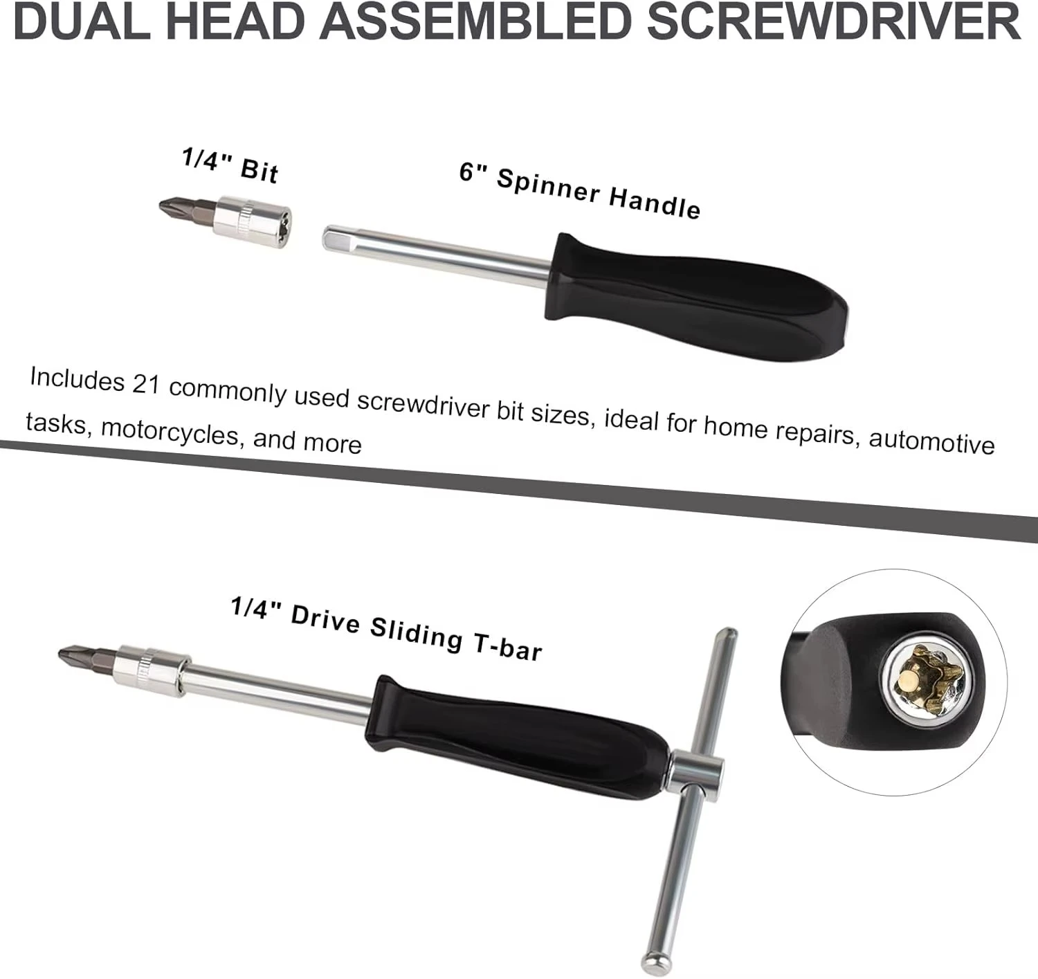 طقم مفكات ولقم متكامل 1/4 بوصة مناسب لجميع احتياجات الصيانة المنزلية والسيارات، يجمع بين رأس سقاطة سريعة، مقابض متعددة، وإكسسوارات متنوعة لتعزيز الأداء وسرعة الإنجاز.